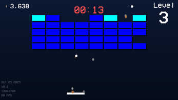 A unique incremental brick breaker game where you control balls with a paddle and must destroy all the bricks on the screen to advance to the next level. Reach the highest level you can before running out of time. Collect coins when destroying bricks to upgrade the paddle, time limit, ball power, speed, and much more!